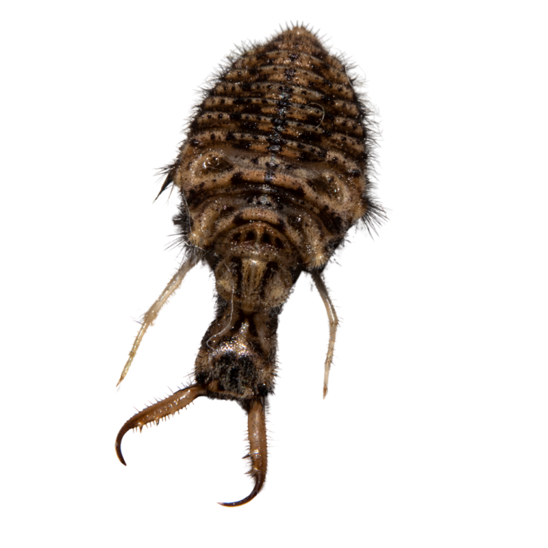 - Build / Form: Compact, low-profile digger with bristles for traction; adults are long-bodied, lacewing-like fliers.