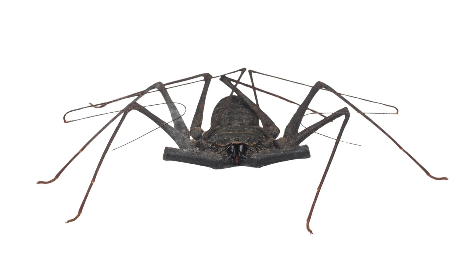 - Adult Size: Body length roughly 1–1.5" (2.5–3.5 cm); leg span commonly 4–6" (10–15 cm), with first pair of “whip” legs extending even farther