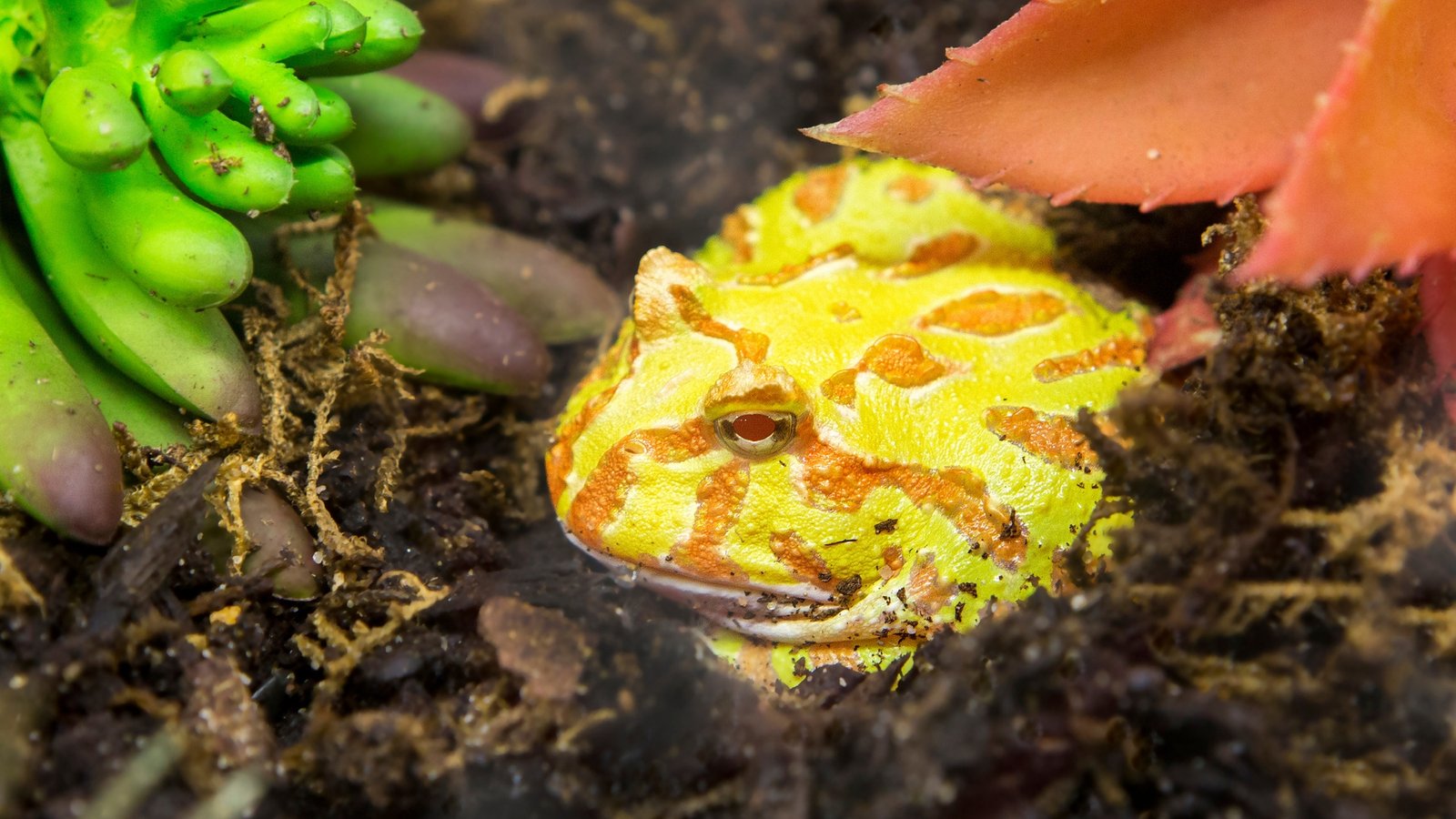 Core setup and environmental targets to keep Ceratophrys cranwelli thriving across all color morphs (Green, Lime, Albino, Strawberry, Apricot/Sunburst, Coffee/Chocolate, Patternless, Ornate/High Red).