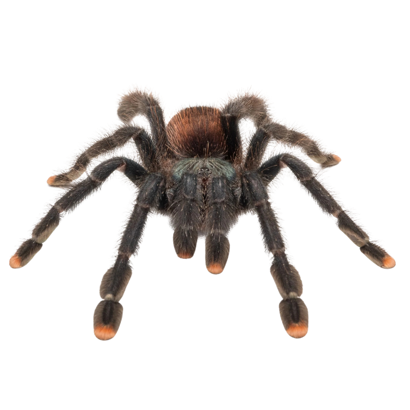 A velvet-bodied arboreal tarantula trimmed in neon-pink toes, the Guyana Pink Toe is an evergreen favorite for display enclosures. By night it weaves airy tube webs among branches; by day it perches like a living ornament. Under brief UV/blacklight it can exhibit a subtle teal-green fluorescence, adding to its “wow” factor—yet this species’ true magic is its calm, watchful presence and captivating tree-top lifestyle.
